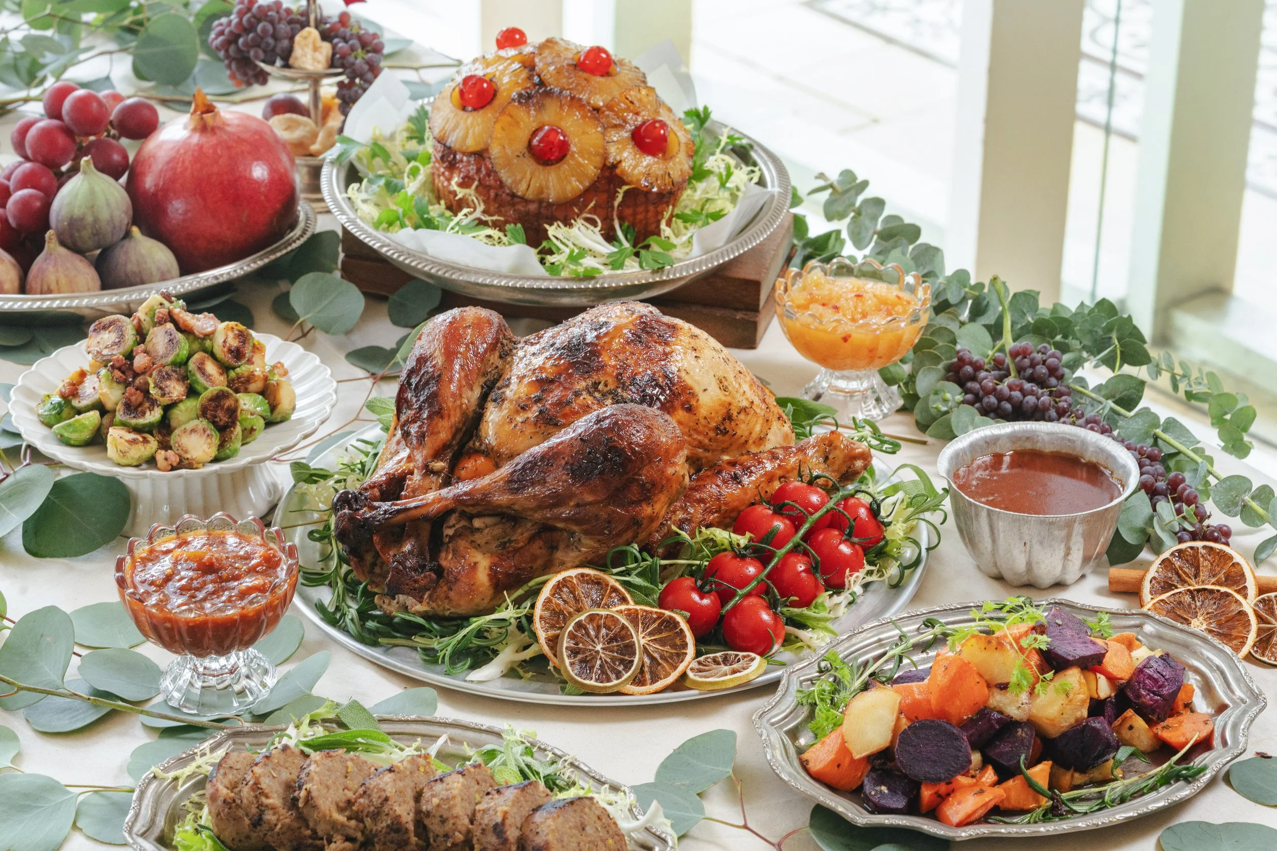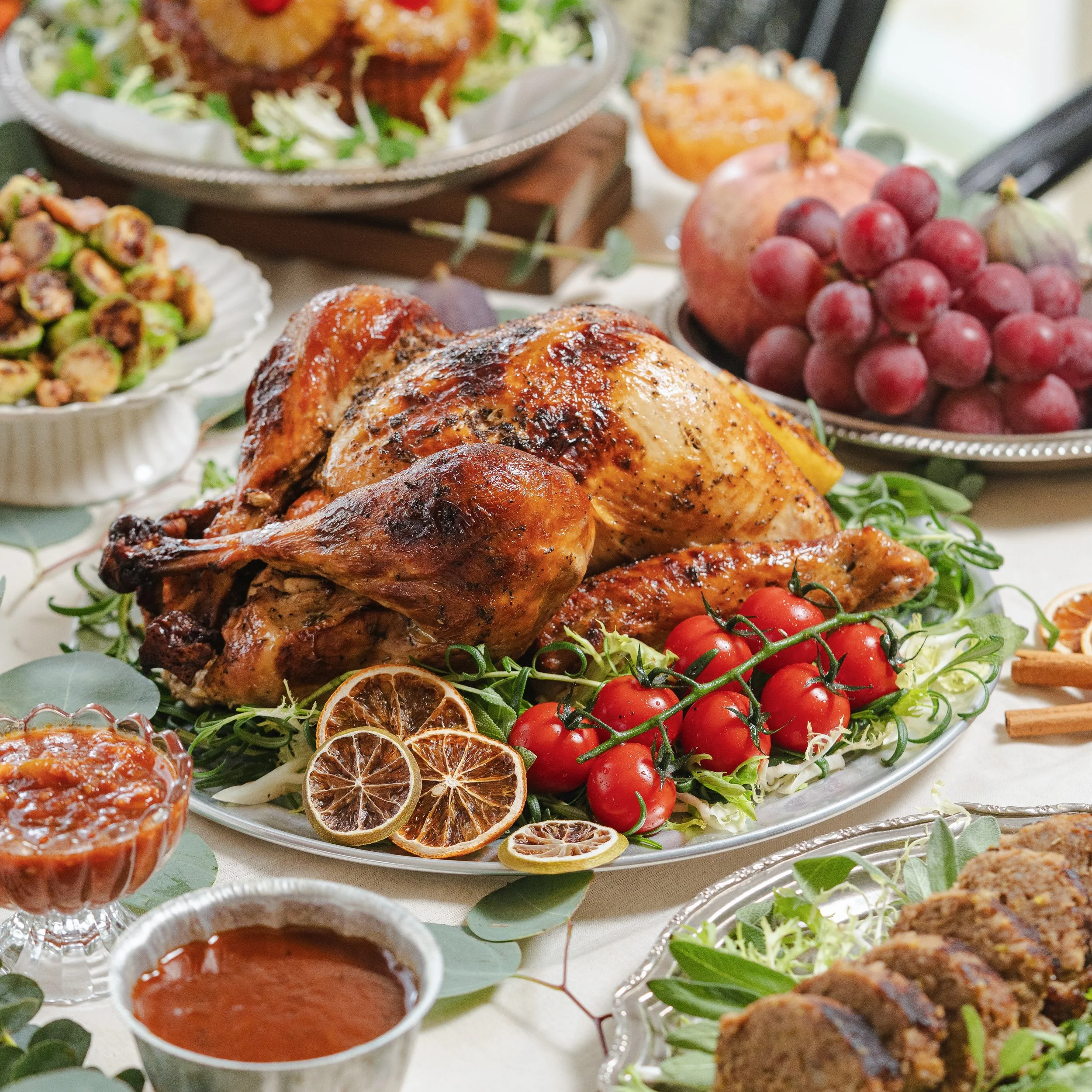 Whole Roasted Turkey with Pork & Chestnut Stuffing, Asian Cranberry Sauce and Red Wine Jus (comes with a complimentary side of your choice)